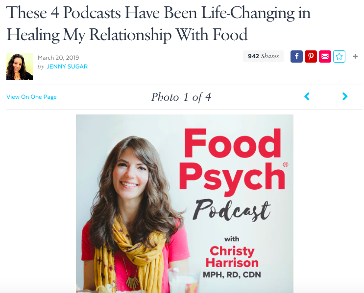 The first article I read from the podcast flip board was the picture above. Here, The author wrote about how she was able to listen to many podcasts involving body image and eating disorders to help her with her own food struggles. She mentioned how she loved these podcasts because they gave solutions, focused on how to deal with eating disorder and food embarrassment and much more. She also listed out her favorite episodes from among the podcasts.