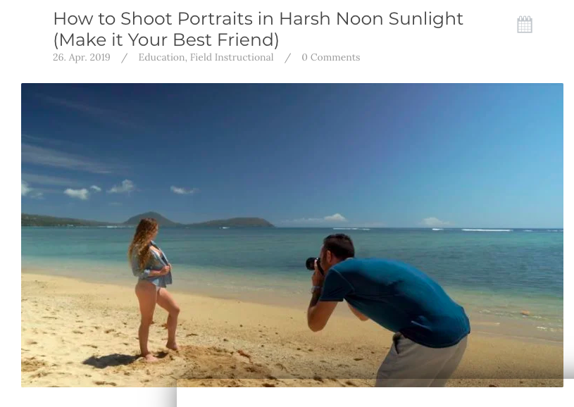 The next article I read was on how to shoot portraits in the harsh daylight. This is a valuable skill as it is something I have always wanted to know how to do. The best advice that was given was just Do not do it. Unfortunately, that is not always how it will work in life. So, it was suggested to use a scrim, find a little corner of shade and also, if necessary shoot facing towards the light but only open the eyes as soon as the photo is being taken.